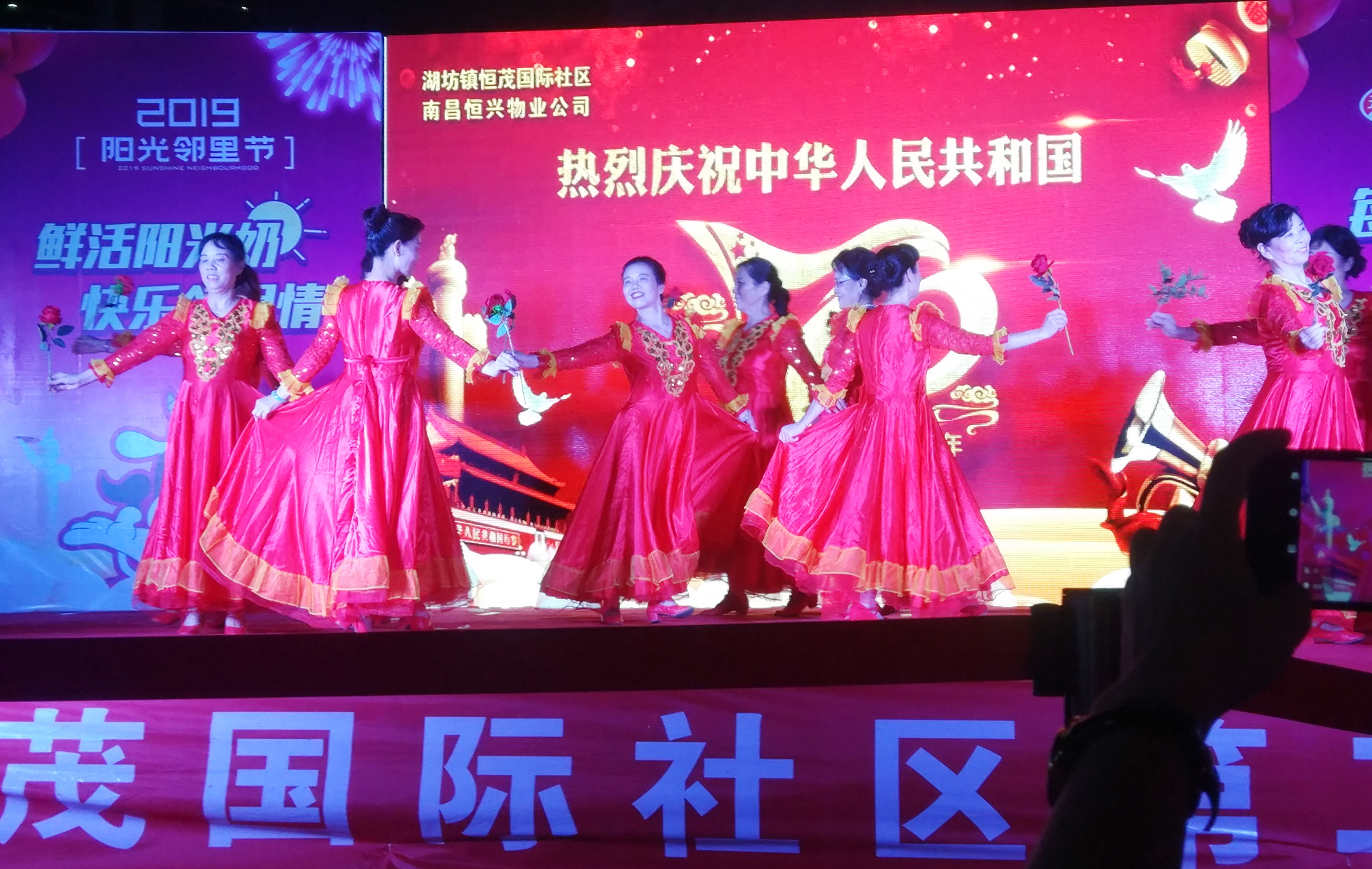 恒兴物业恒茂国际都会项目经理谢晓红发表了庆祝祖国成立70周年的讲话。300余位小区居民参加了此次活动。晚上19时30分许,演出活动正式拉开序幕,社区居民将自编自导的舞蹈、独唱、合唱、小品等精彩节目搬上舞台。活动节目精彩纷呈,紧扣主题,倾情演绎了居民对党和政府的关怀与感激之情,展现出了居民良好的精神风貌,体现了老有所乐、老有所为的和谐氛围。