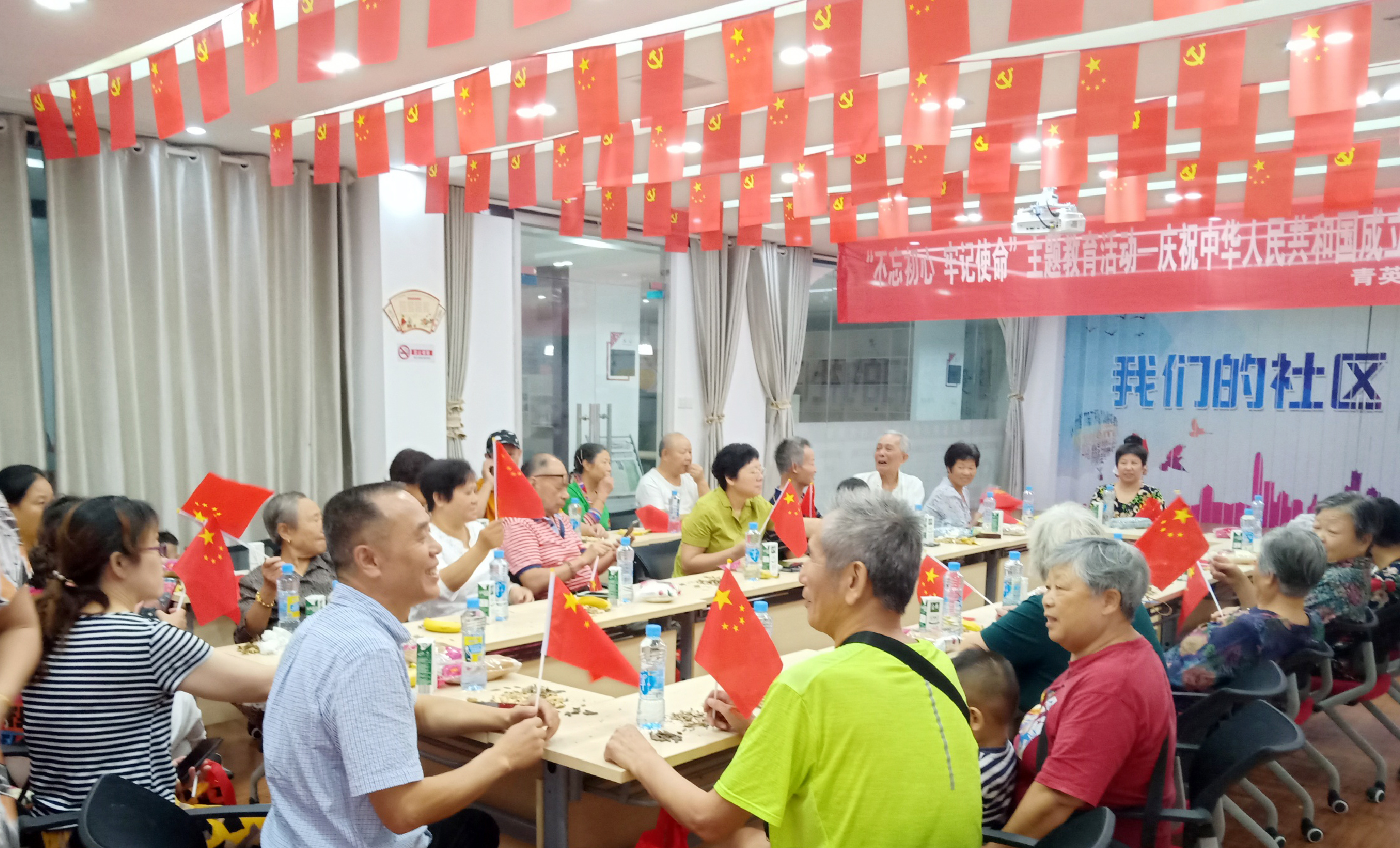 社区党支部书记首先向老人们致以节日的问候和诚挚的祝福,向辛苦为建设社会主义事业作出贡献的老同志们表示感谢。会上,大家吃着香蕉,嗑着瓜子,喝着牛奶,忆苦思甜,畅谈70年来祖国日新月异的变化。两对老人还自告奋勇为大家献上了《红梅赞》舞蹈。座谈会在《歌唱祖国》激扬的歌声中结束。