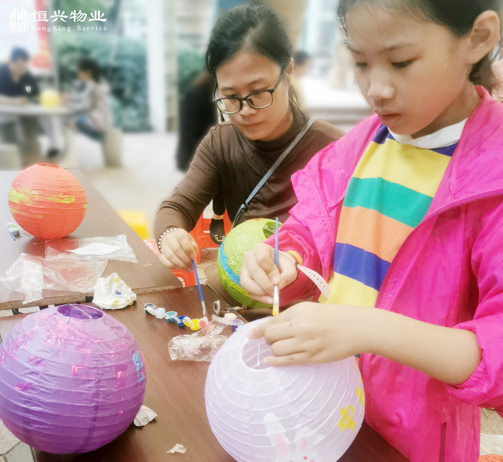 9月23日下午,国际华城物业服务中心联合光大银行开展“喜迎中秋,欢度国庆”主题活动。小朋友们DIY灯笼、涂鸦瓷膏娃娃、投壶赢礼品……个个脸上挂满笑容。