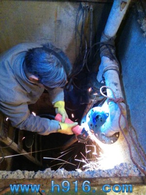 因污水泵和污水阀门长期在污水井中被锈蚀,工程人员在拆卸时要将锈蚀的螺丝取下费了九牛二虎之力。你看扳手和其它工具都用不上,只能用切割机了,因井口过小,工作人员在作业时真是艰辛。让我们为这些默默无闻的一线工作员工点赞,因为有了他们无声的付出,才能保障我们业主正常生活的安宁。