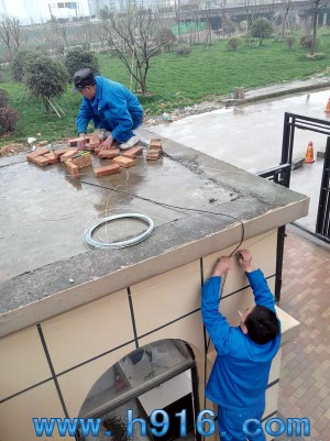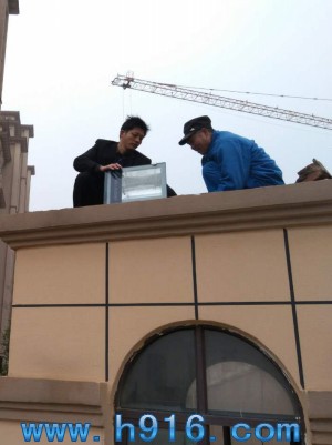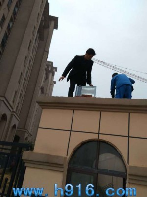 红谷新城为了给小区业主的车辆进出更方便、快捷,在红谷新城东门新增一条行车道,为了车辆能在晚间进出方便,特安排工程部人员在一楼房顶上安装了一个大射灯。工程部在裘主管的带领下,不惧艰难险阻爬上楼顶安装射灯,得到过往业主称赞。