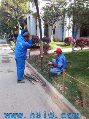 随着小区入住率的不断攀升,小区机动车辆也越来越多,乱停乱放现象不断发生,为了杜绝机动车辆进入绿化带,破坏草地。城开物业园林部用废弃的树枝,将道路与绿化带隔开,形成一道天然屏障,有效的阻止了机动车辆进入绿化带。此举得到了业主的好评。