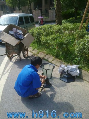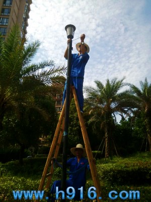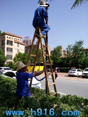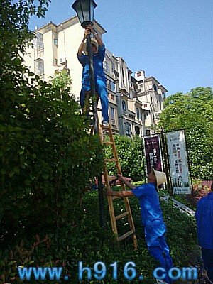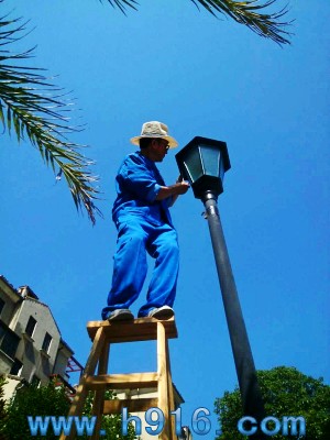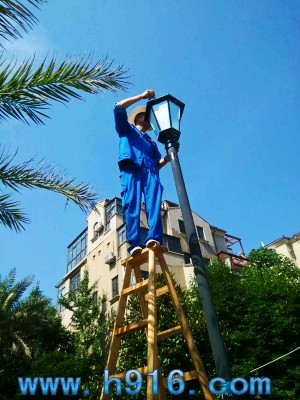 工程师傅顶着骄阳似火烈日,改造高架灯,他们个个满头大汗,可是看见自己的成果,一个个露出笑脸,过往的业主纷纷翘起大拇指给物业工作人员点赞。
