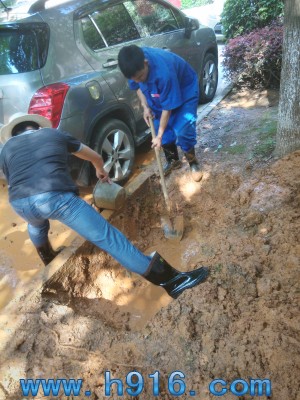 每天环境部上班第一件事就是打开水阀,把卫生搞好,今天也不例外,当环境部人员打开水阀后,走到33栋2单元准备干活时,发现有水哗哗地往外流,他第一反应就是园林水管爆了,赶紧关掉水阀,立即上报给主管,环境主管听到水管爆了立即报给工程部主管,工程主管接到通知后,为了减少不必要的浪费及不影响环境部正常工作,及时安排人员对水管进行抢修,工程部师傅来到现场查看,经过努力开挖、接管等一系列的工作,在第一时间内终于把园林水管修复了,工程部师傅的工作效率极高,值得我们学习,我们的能耗截留又一次得到了很好的控制。