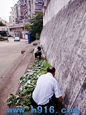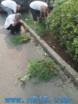在小区主干道灌木丛边、楼栋单元门两侧、车库车位旁长出许多杂草,抢夺苗木的营养、肥料,且打草机不便作业。管理处组织安排管理人员上午在小区内集体拔除杂草,清扫路面,进一步提高小区环境卫生。