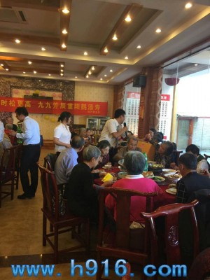 随后来到附近酒店举办了聚餐活动,吴经理上台致词:“三三令节春时松更高,九九方辰重阳鹤添寿”,代表恒兴物业恭祝老人们健康长寿。北京银行、思雅特代表方致词并开展与老人互动抽奖游戏,现场气氛浓郁,金门园6号楼业主起身跳舞助兴。餐后活动顺利圆满结束。