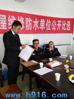 米罗小区首次申请房维防水施工单位公开比选,于11月14日下午14:00在物业楼会议室进行,参会方:米罗第三届业主委员会、花果山社区、区房管局、、防水专家、房维义务监督小组、物业方,业委会委员作为此次评选小组对参与公开比选的三家防水单位的参评文件、报价、施工方案、安全质量等进行综合评审,最后在公开、公正、公平的比选活动下,选定其中一家为此次米罗小区13栋房屋维修的施工单位。并签订《恒茂世纪花园小区屋面、外墙渗漏维修工程施工合同》。