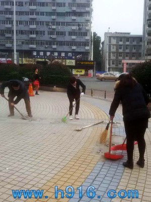 12月19日商业街中国银行门前停车位,地面很多损坏,多处出现坑坑哇哇,导致一些车主停车困扰,为方便车主停车,都会各部门主管到场清理碎石,同时一起打扫各处的卫生,中国银行保安不停的夸物业人员敬业和负责。