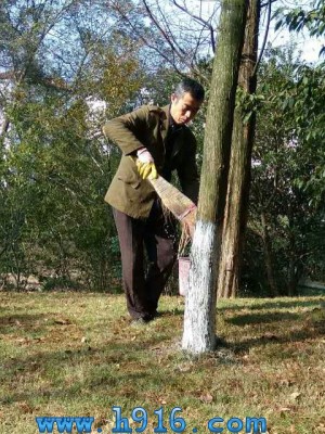 因梅岭冬季天气极寒,为不让苗木被害虫侵害、不因寒冷的温度使树干冻裂,园林部熊主管带领园林部的师傅们用扫把给小区内的树木刷上了石灰,给树木穿上了雪白的“外衣”,让我们为他们的辛勤劳动点个赞吧!
