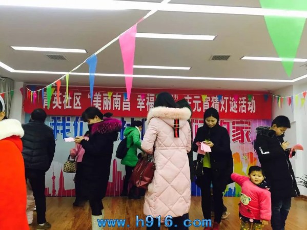 2月10日下午2点,英伦国际小区在元宵节来临之际,协助社区举办了元宵节活动。本次活动以“美丽南昌 幸福家园”庆元宵猜灯谜活动为主题。现场社区工作人员收集了100多条灯谜,供小区业主猜,活动中,业主们仔细分析谜面,讨论答案。不一会儿,100多条灯谜被一抢而空了,大家排队揭晓谜底,并领取相应的奖励。随后,社区还煮汤圆给参加活动的人吃,一起共庆元宵。此次活动,即丰富了业主的业余生活,同时也增加了邻里的感情。