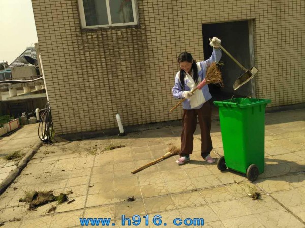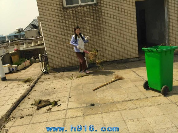 5月15号下午,在保洁主管汤美红的带领下,保洁大姐们手拿扫把,铁锹,等清洁工具来到怡景阁屋面的各个角落,屋面上的杂草,散落的垃圾,废弃物等进行全面清理,大家齐心协力,很快便焕然一新,小区业主看到保洁大姐的劳动成果都赞不绝口,十分感谢她们的辛勤付出,此举深得业主好评!