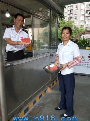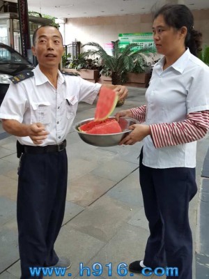近段时间连日高温,皎阳似火。在这酷暑难耐的天气下,城市花园的员工仍然穿着已被汗水湿透的衣服坚守岗位,为此,城市花园管理处保洁主管用平时保洁员捡来的废品卖了之后买来西瓜,为那些坚守在第一线的保洁和秩序员们送上一片清凉,看着保洁阿姨们都露出了开心的笑容。一份清凉,一份关怀,极大的鼓舞了一线工作者的士气,同时也让他们在“恒兴物业”这个大家庭中体会到“家”的感觉。