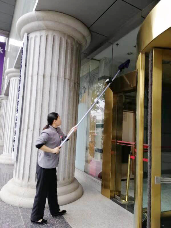 保洁员对国税局办公大楼各楼层办公室及大厅进行日常清洁