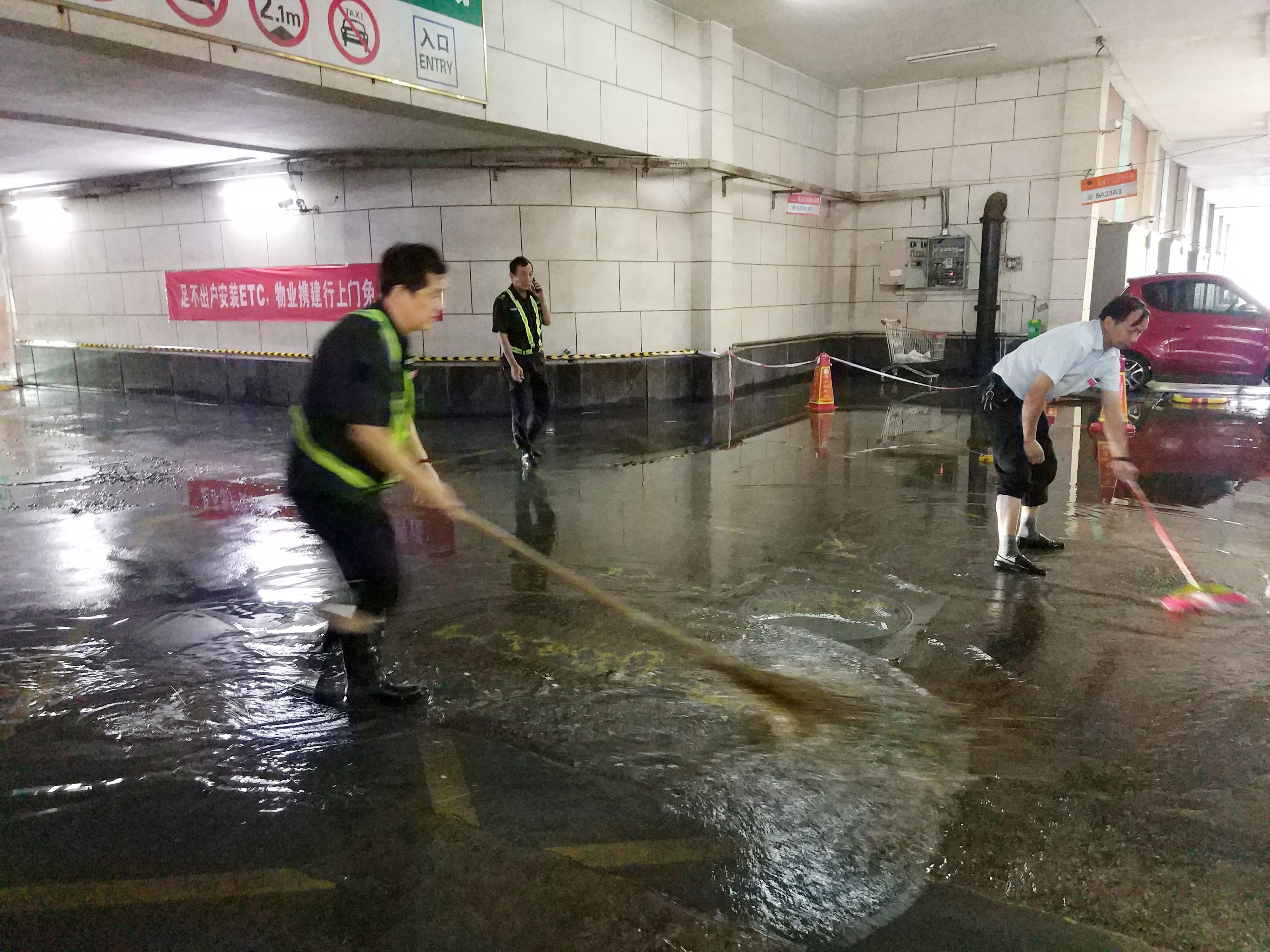 抗洪期间,工程部对地库排水泵启用紧急措施,将所有排污泵进行手动制操作,及时排出电梯地坑积水;及时对积水部位井盖打开引流,确保雨水排出;及时排查地库及园区弱电箱有无漏电情况,及时对已进水地段进行断电处理,防止触电事故发生。洪水消退后,工程师傅又对所有设施设备进行排查、检修,确保后期设施设备运行正常。