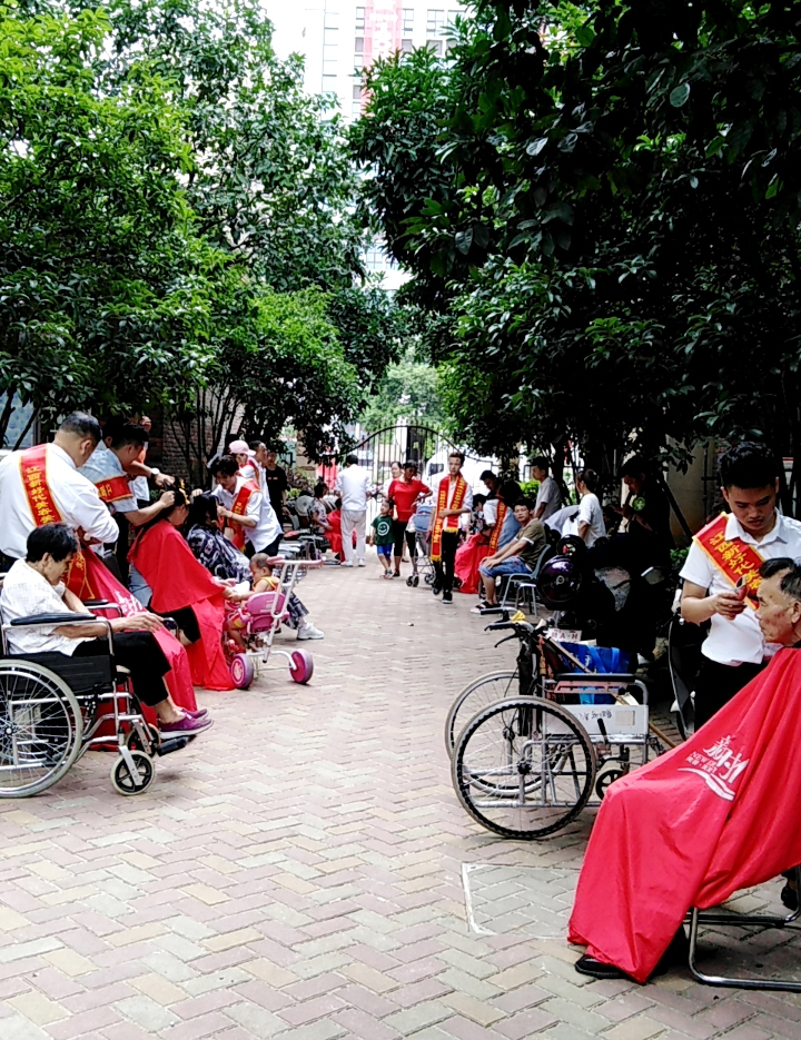 理发志愿者运用娴熟、精湛的理发技术,细心地为每一位业主修剪头发。业主们剪了新发型,脸上露出了满意的笑容,称赞志愿者们不仅手艺好,为业主服务的志愿精神更是值得赞扬。