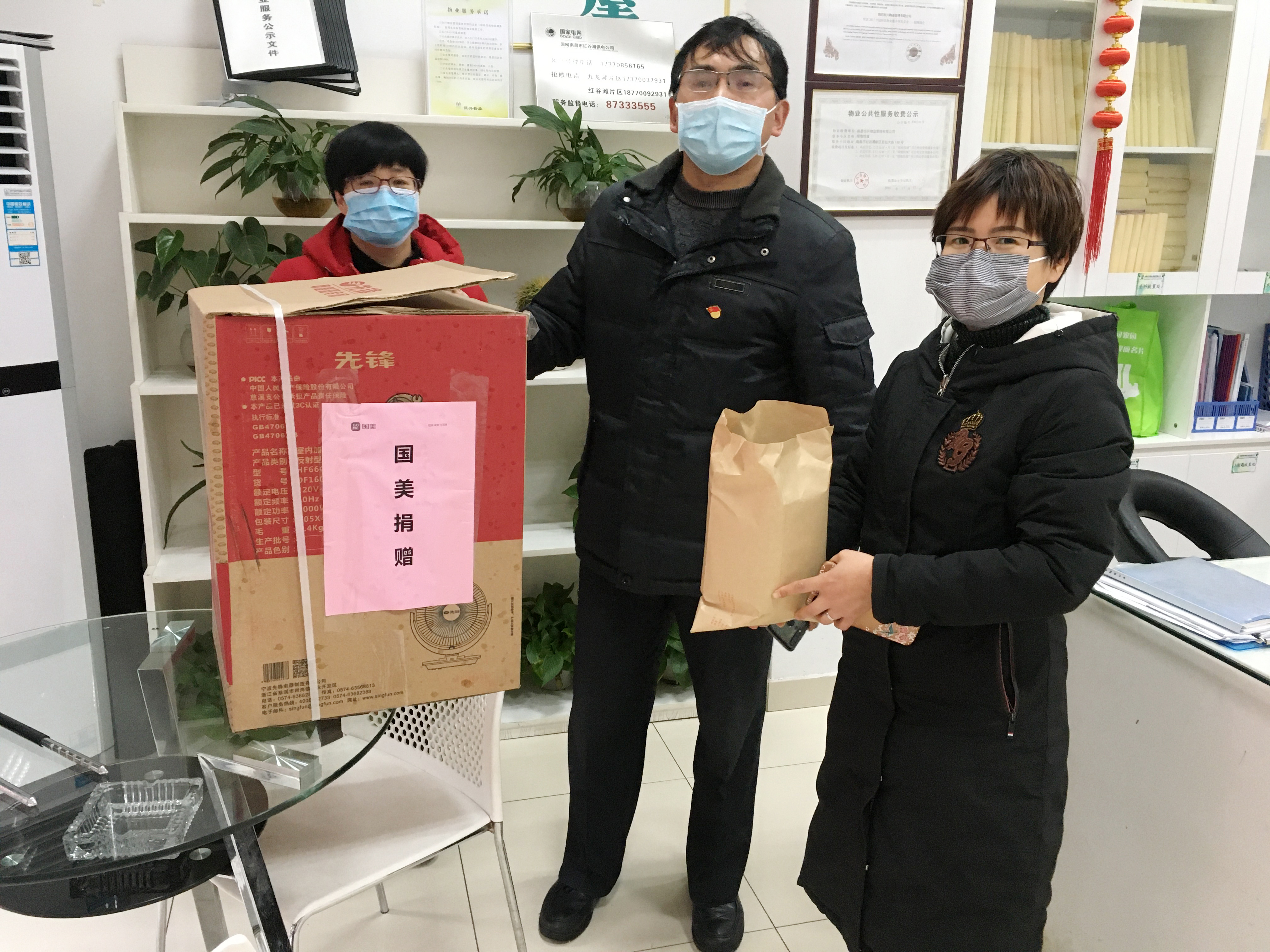业主捐赠取暖器、口罩