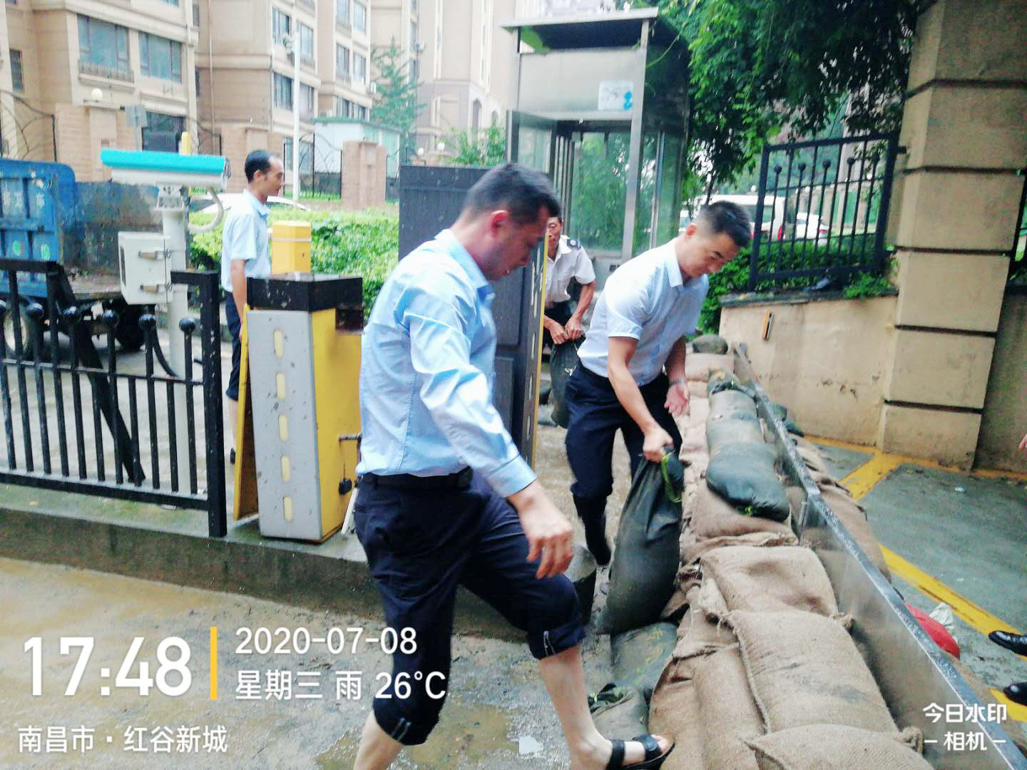 7月7日,受新冠肺炎疫情影响被迫推迟的高考的第一天,各地突降暴雨,且持续不断。南昌市诸多地段排水不畅,积水严重。为保证业主生命财产安全,恒兴物业总公司第一时间发布防汛抢险预案,并迅速组建应急防汛小组,确保各项目防汛工作落到实处。恒兴物业工作人员积极奋战在抢险第一线,用坚实的臂膀守护着小区的安全。