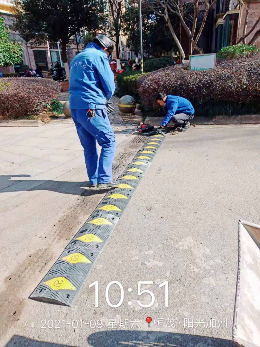 为了加强小区道路安全管理,从源头上消除小区倒流安全隐患,恒兴物业阳光加州管理处经过实地查看、多次与工程部商议解决方案,并与居民沟通、征求意见,最终由物业公司出资,在小区内安装减速带。
