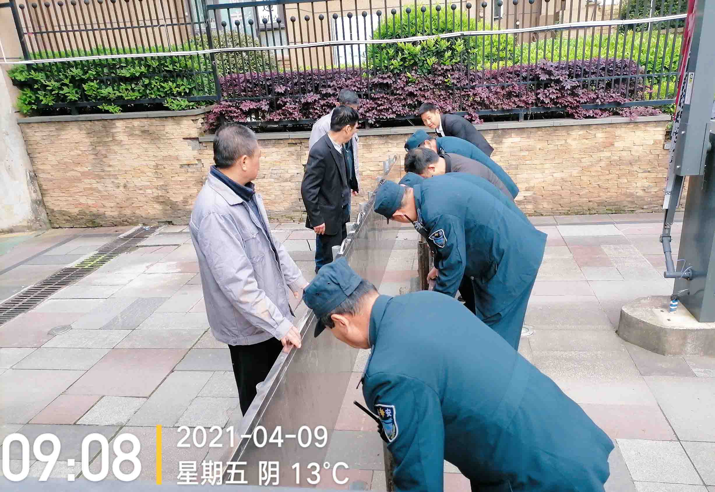 为了本次演练活动能更好地开展,红谷新城物业服务中心对小区存在安全隐患进行了彻底排查,并对许多方面进行改进,对小区低洼地库出入口安装防汛挡板预插口,并在各出入口储备大量防汛沙袋。演练当天,工程部裘经理公布了演练方案,做到各部门员工一同上阵,具体分工,责任到人。演练过程中指导秩序人员根据现场实地情况先安装防汛挡板插销,用来固定防汛挡板,再堆放防汛沙袋填实,防止间隙中渗漏。通过此次防汛演练,我们有信心将洪水阻止入库,保护业主财产及公共设施设备。