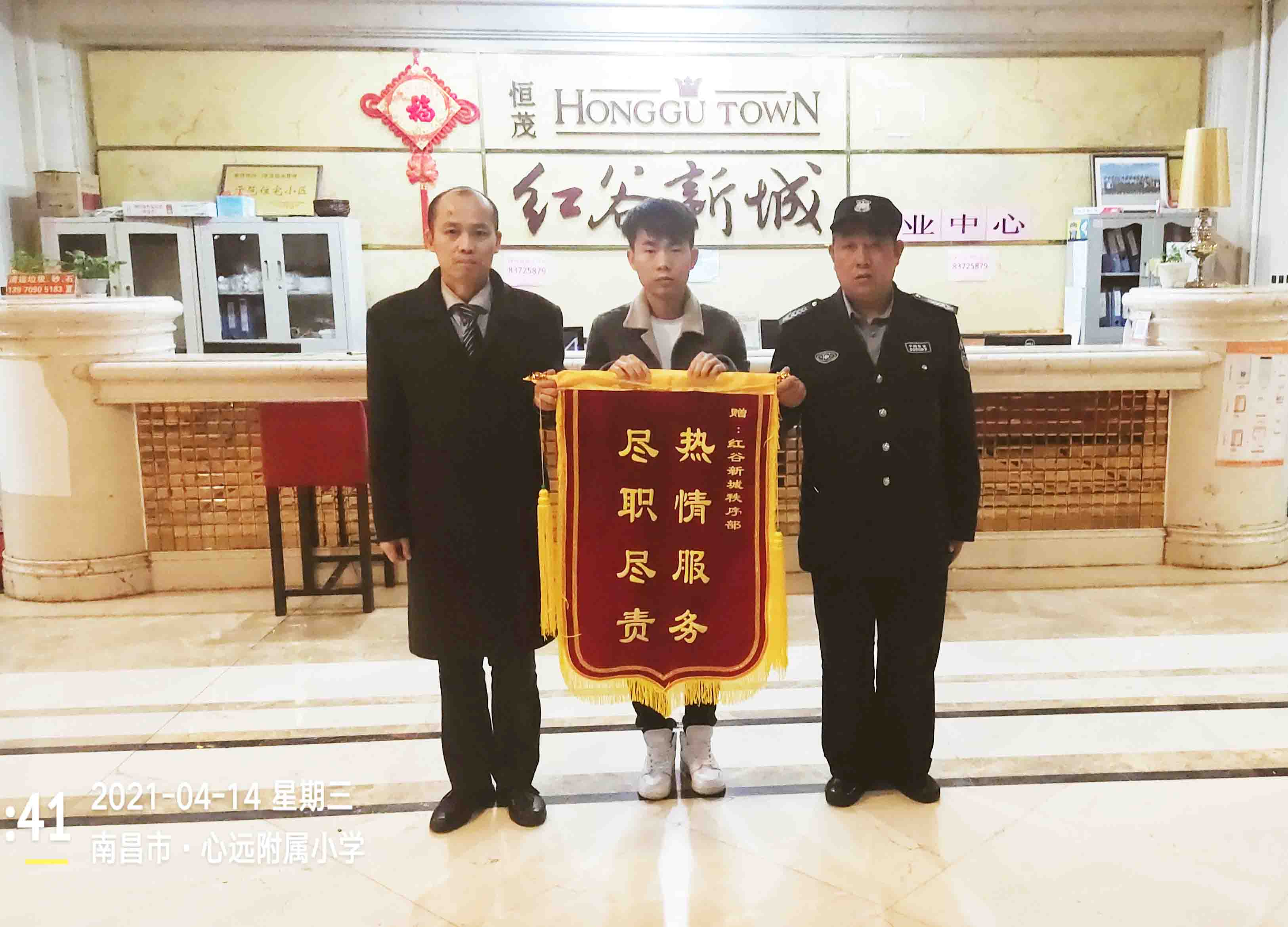 【本站讯】(金娟)4月15日一大早,红谷新城管理处员工上班时发现,物业秩序部办公桌上放着一面锦旗,问起原由才知道,这是昨晚物业工作人员下班后业主送过来的。